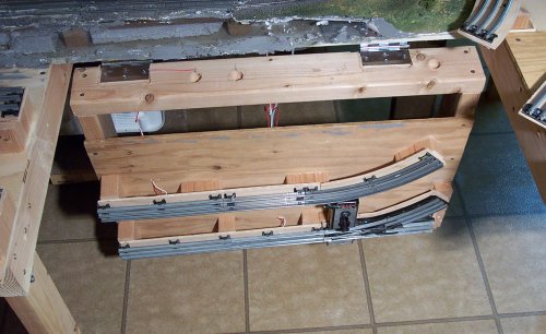Two Lionel ZW tranformers power most of the layout with a large 12v and 5v DC supply used to power lighting and solid state accessories. At present there is no remote control used, but that could be a future addition when I start to spend more time running it then building it.